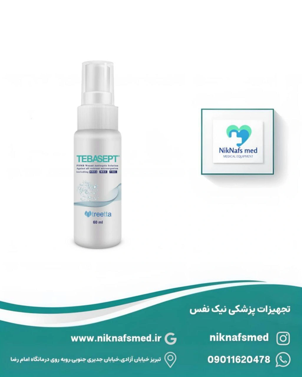 اسپری ضدعفونی زخم طباسپت (Tebasept PHMB Antiseptic Spray) محصولی پیشرفته از شرکت تریتا در ایران است که با ترکیبی قدرتمند از PHMB (پلیهگزانیدین) و بتائین، جهت مقابله با طیف وسیعی از میکروارگانیسمها و بیوفیلمها طراحی شده است . حجم ۶۰ میلیلیتری این محصول، امکان استفاده چندباره را فراهم کرده و گزینهای مقرونبهصرفه برای مصرف خانگی یا کلینیکی است .