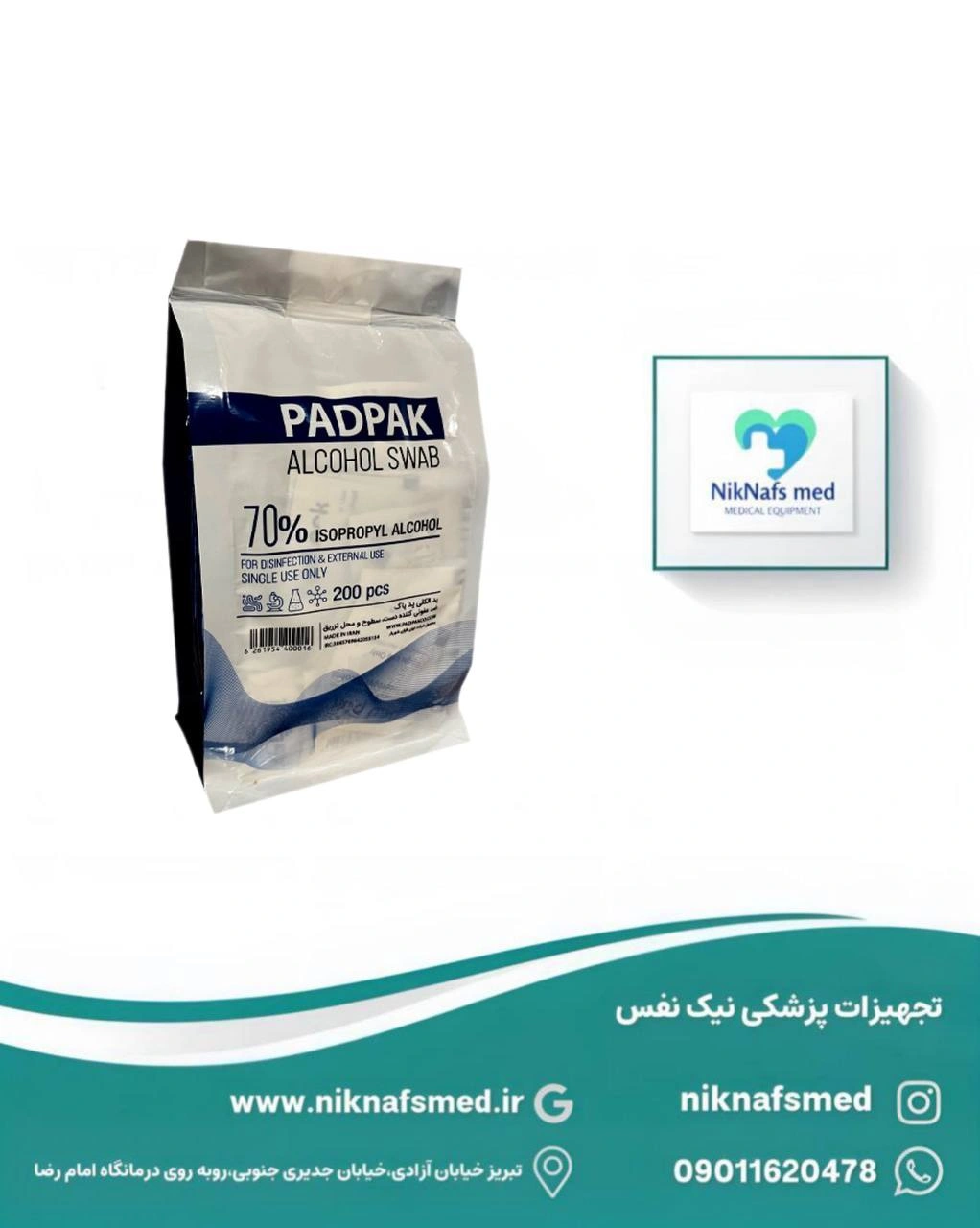 داخل هر پد، الکل ۷۰٪ استاندارد وجود داره که بهترین درصد برای ضدعفونی پوست قبل از تزریق، تست قند خون، تمیز کردن تجهیزات کوچک و استفادههای بهداشتیه.